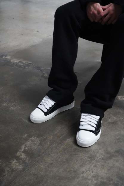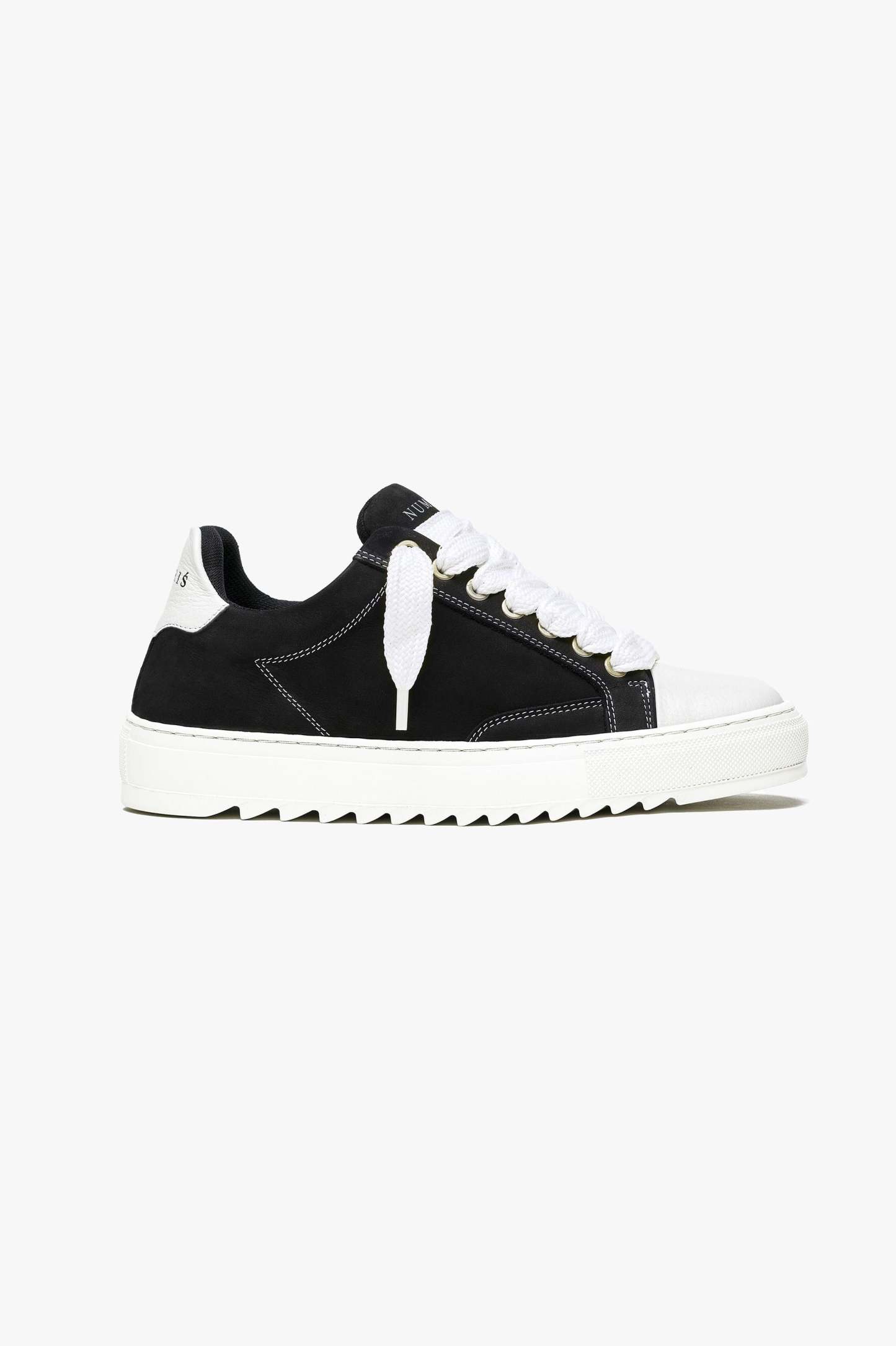 The Atelier trainer was inspired by Parisian lifestyle. Every stitch and detail was meticulously designed in a Parisian workshop. The Atelier features a premium black nubuck upper with crisp white stitching and finished with our signature pebbled leather white toe cap. The interior of the trainer features collar lining providing unrivalled comfort. The final touches see our Numeriś branding on the heel of the shoe, with our slogan for this style 'Design is thinking made visual' on the tongue.