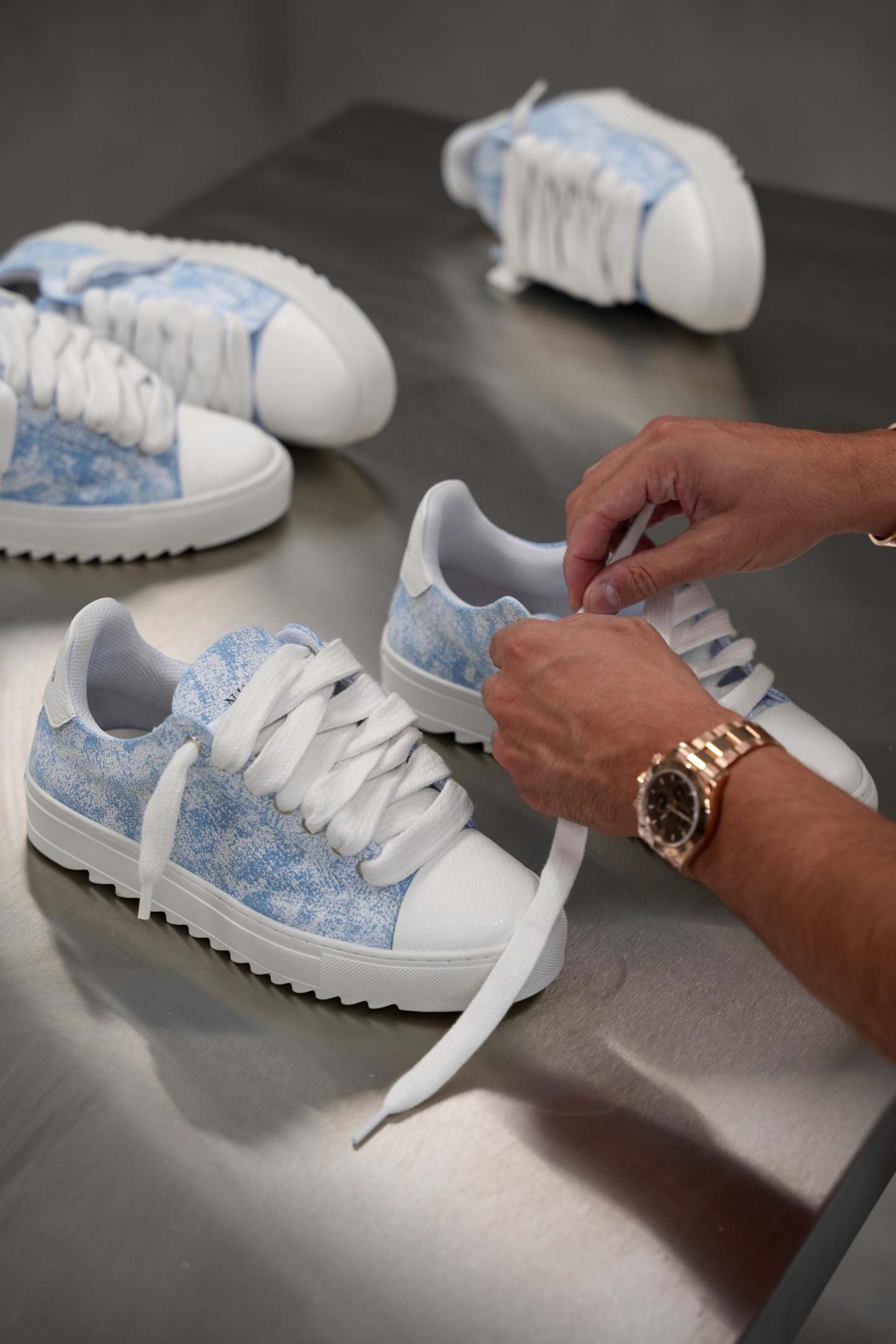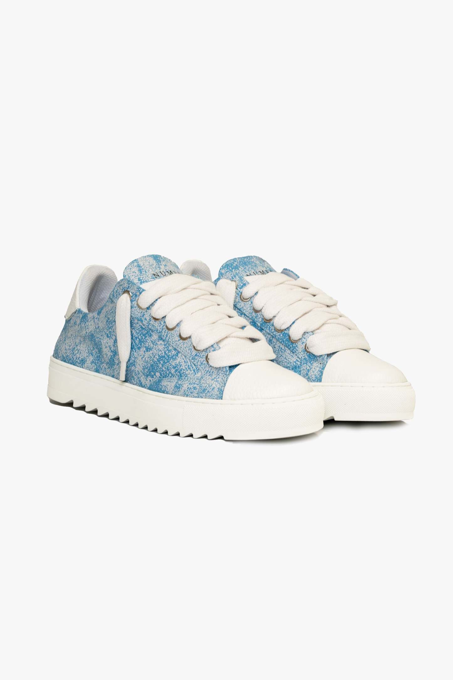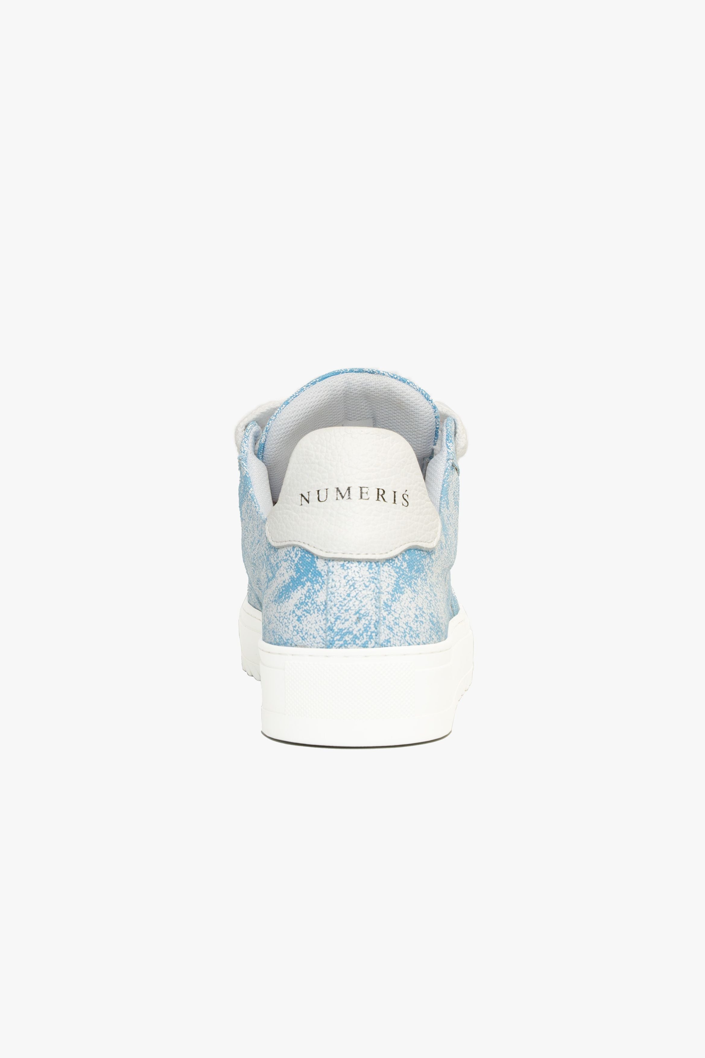 Crafted with meticulous attention to detail, the bespoke hand-dyed canvas upper ensures that each pair is a unique work of art, as no two pairs will bear the same pattern. Complementing this distinctive feature is the signature crisp white pebbled leather toe cap, adding a touch of sophistication to the design. Inside, the trainer boasts a comfortable collar lining that enhances the overall wear experience. The finishing touches include our distinctive Numeriś branding on the heel.