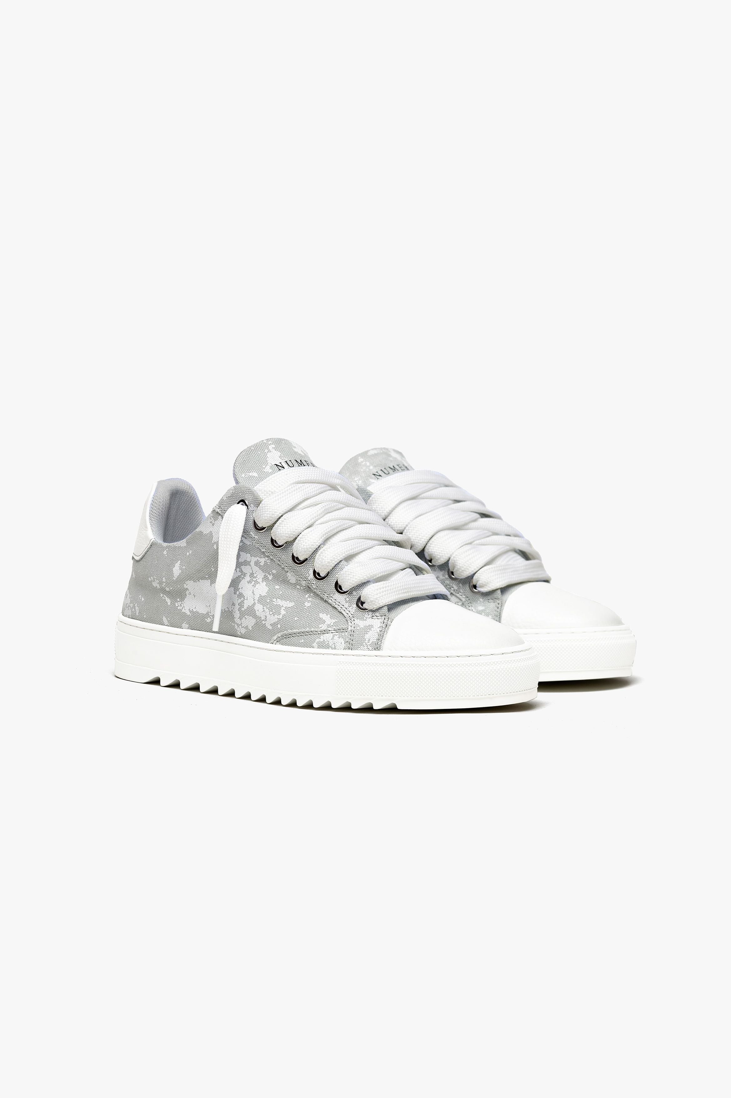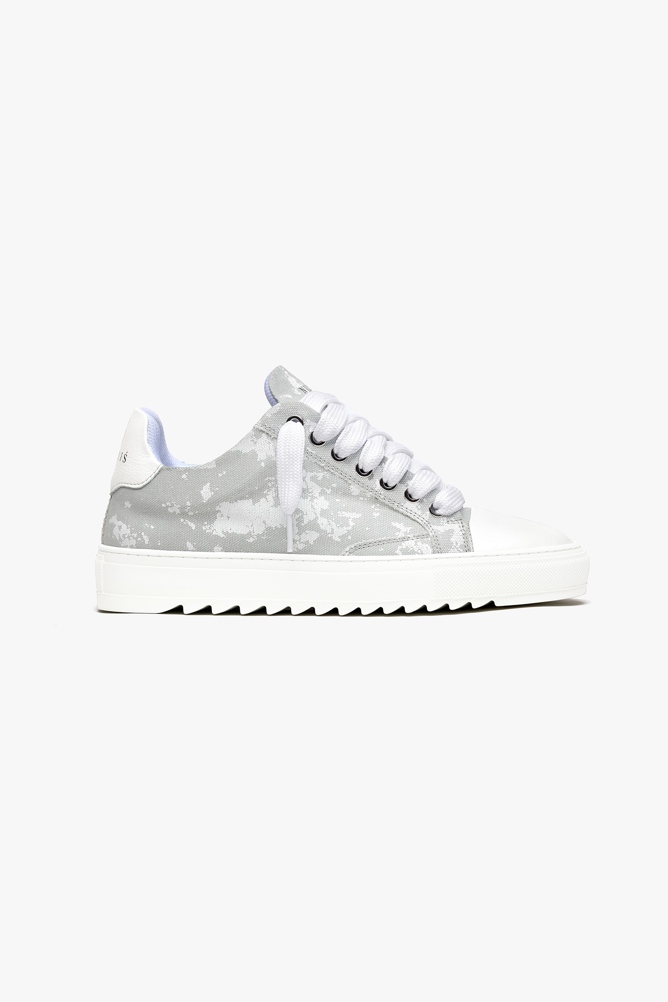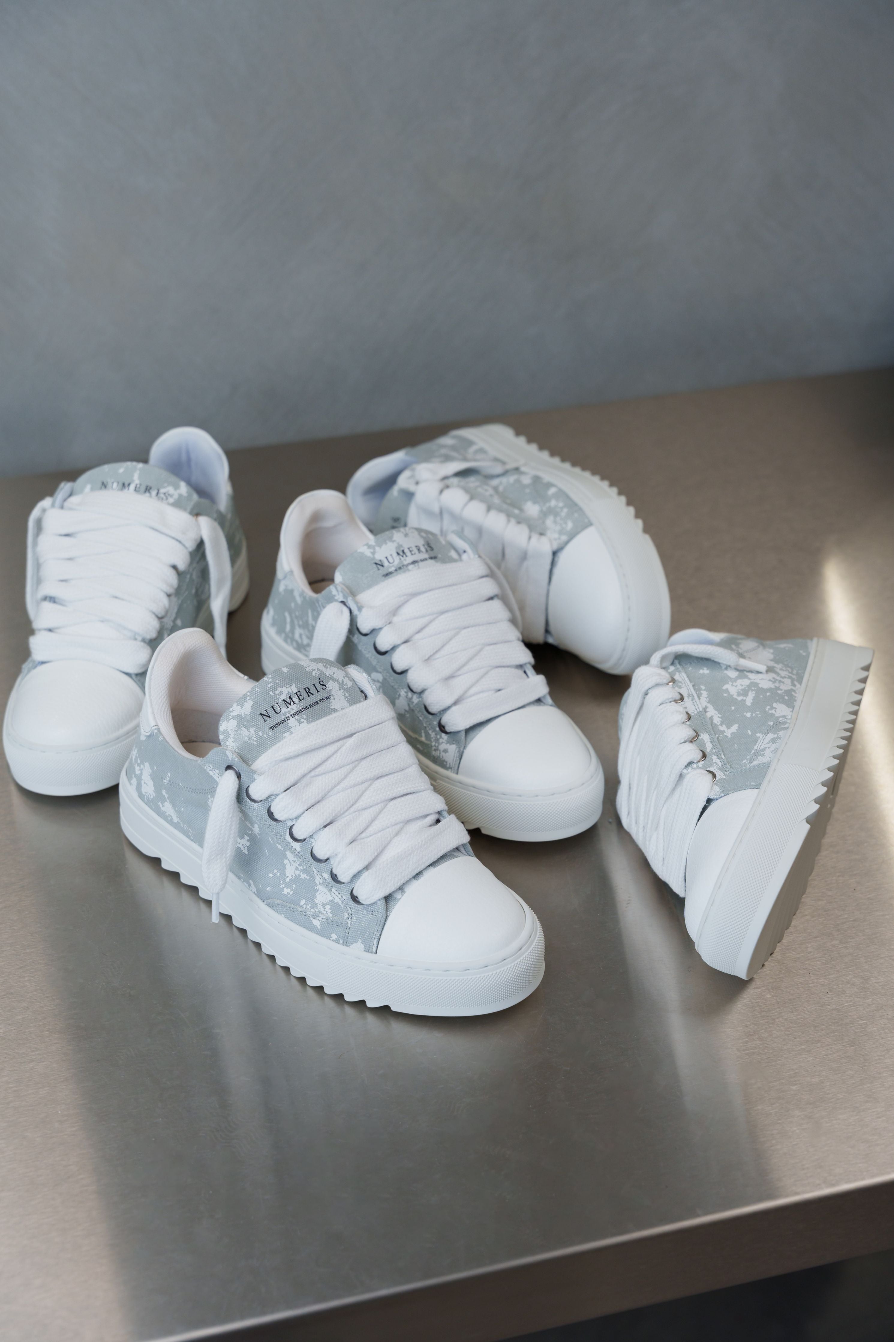 Crafted with meticulous attention to detail, the bespoke hand-dyed canvas upper ensures that each pair is a unique work of art, as no two pairs will bear the same pattern. Complementing this distinctive feature is the signature crisp white pebbled leather toe cap, adding a touch of sophistication to the design. Inside, the trainer boasts a comfortable collar lining that enhances the overall wear experience. The finishing touches include our distinctive Numeriś branding on the heel, accompanied by the style-defining slogan, 'Design is thinking made visual.'