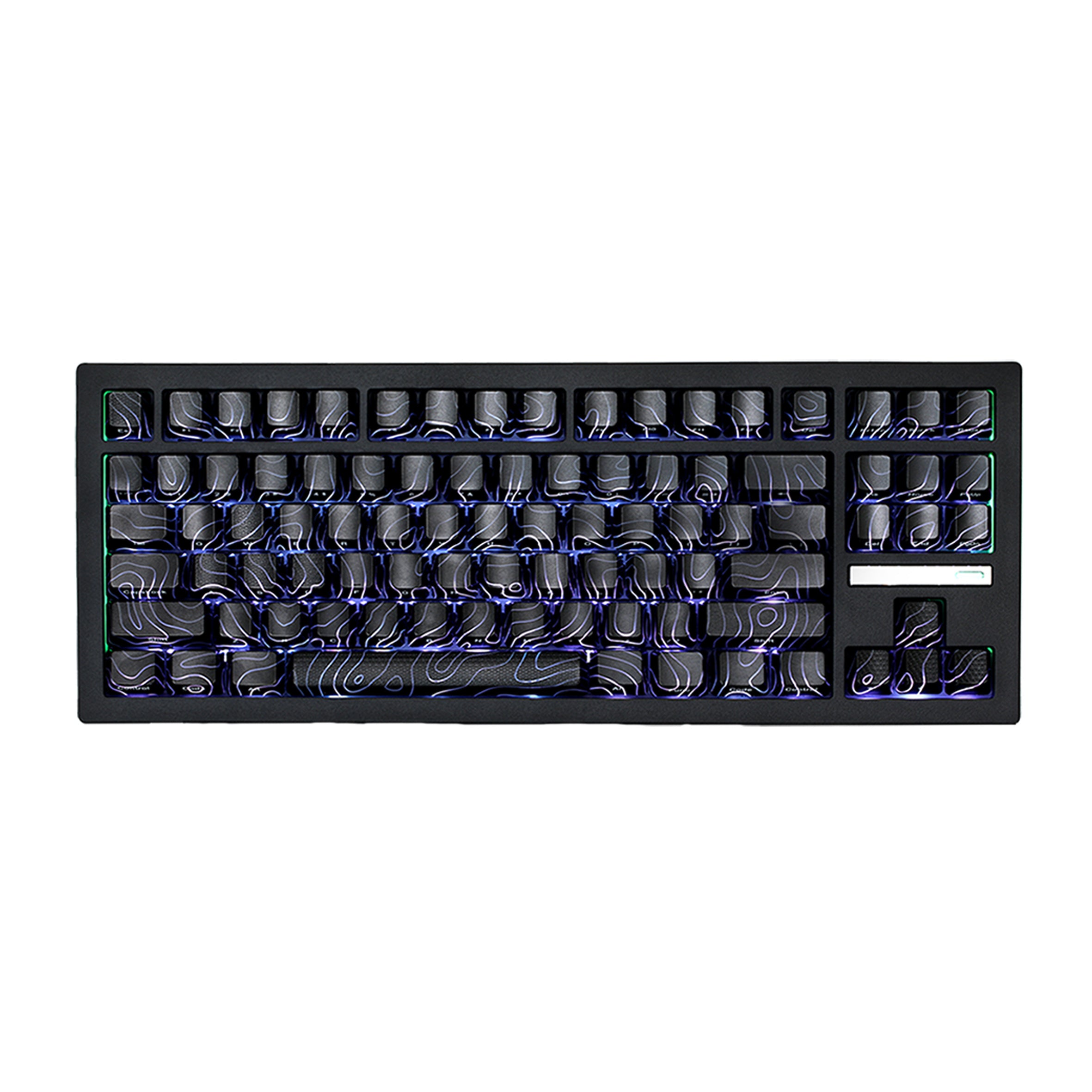 - 【IMD PBT Keycaps with Clear Legends】Crafted from high-purity PBT with IMD technology, the keycaps resist shine and wear while featuring a stunning black topographic theme that glows with RGB. Side-printed, molded legends ensure long-term clarity and smooth light diffusion.