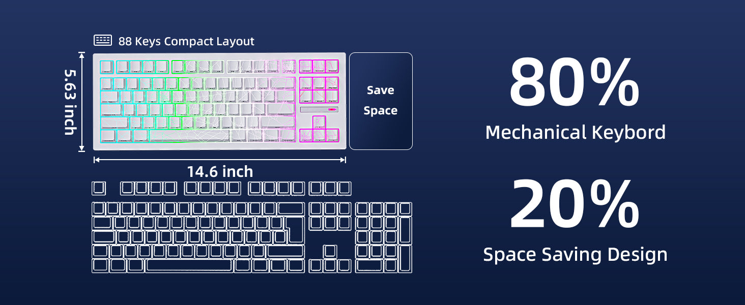 - 【80% Layout for Work & Play Efficiency】This compact 80% keyboard keeps essential keys—F-row, arrows, and navigation cluster—ideal for gamers who type often or professionals who need space-saving performance without losing functionality.