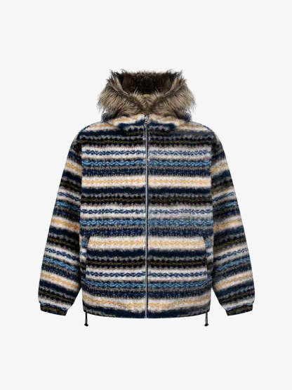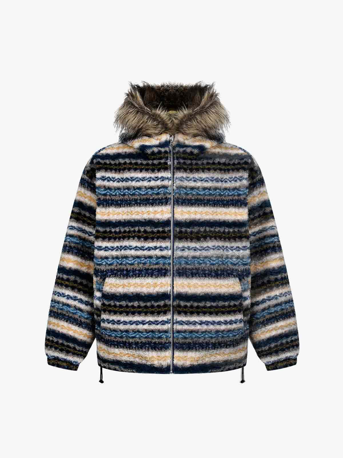 Retro Striped Reversible Faux Sheepskin Collar Jacket