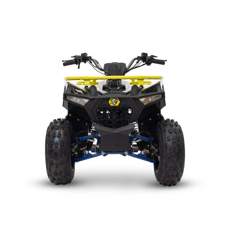 Il quad è equipaggiato con freni anteriori e posteriori a disco idraulico per una frenata efficace, mentre i pneumatici anteriori e posteriori da 18x7-8 e 18x9-8 assicurano aderenza e stabilità su diversi tipi di terreno.