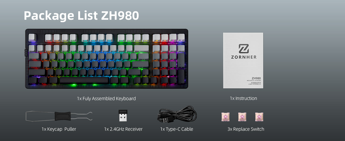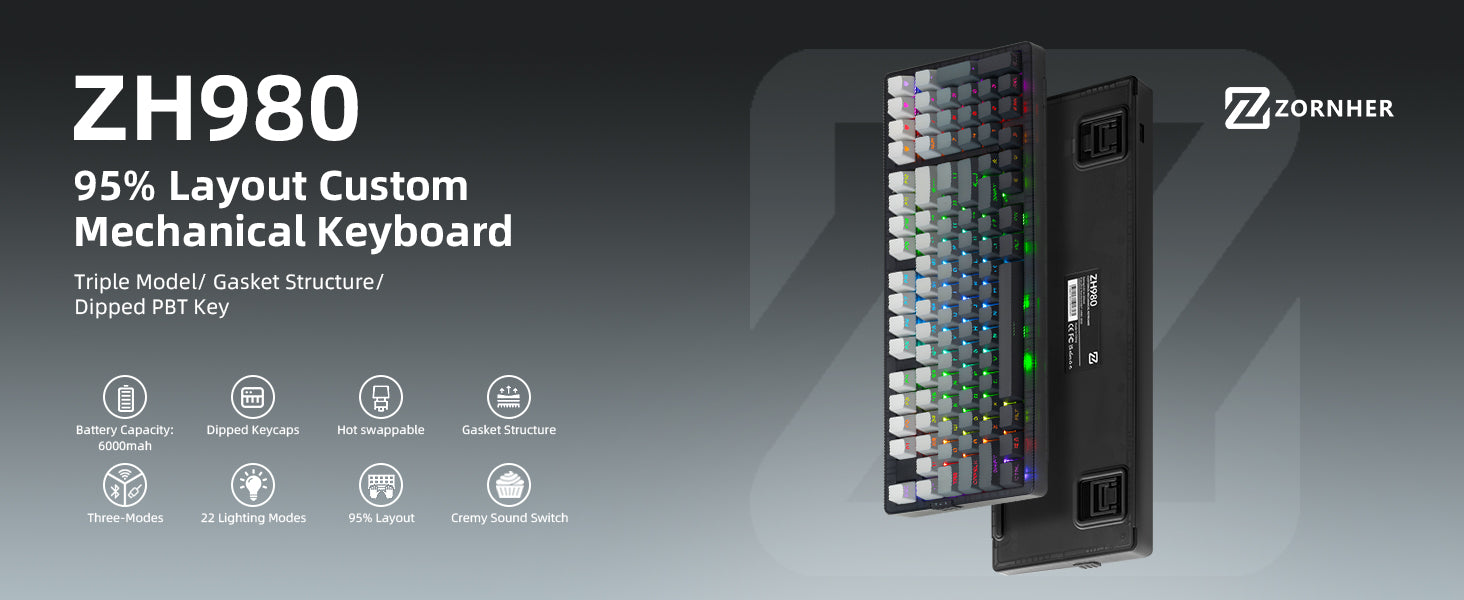 Zornher ZH980 95% Dip-Dye Process (Solid Color Gradient) Keyboard