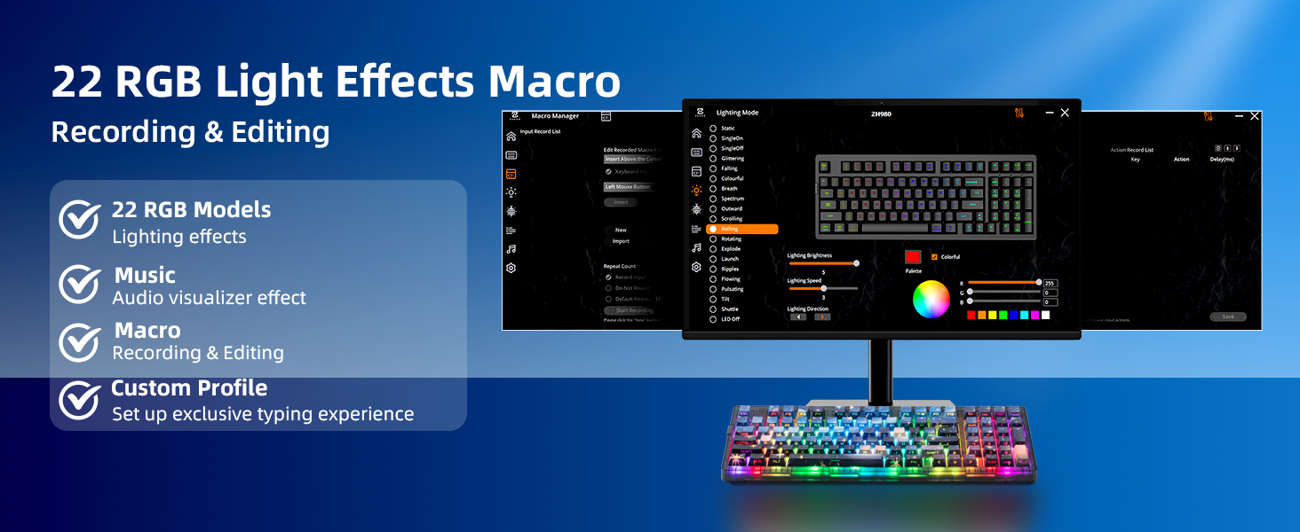 - 【22 RGB Modes with South-Facing & Side Lighting】Enjoy vivid RGB with 22 preset lighting effects, including side-glow and south-facing LEDs. Combined with OEM-profile keycaps and high transparency legends, the lighting looks clean, consistent, and immersive.