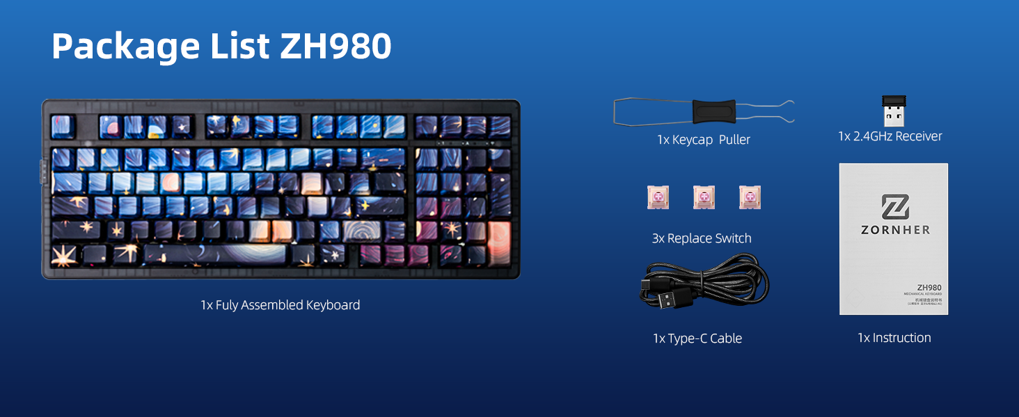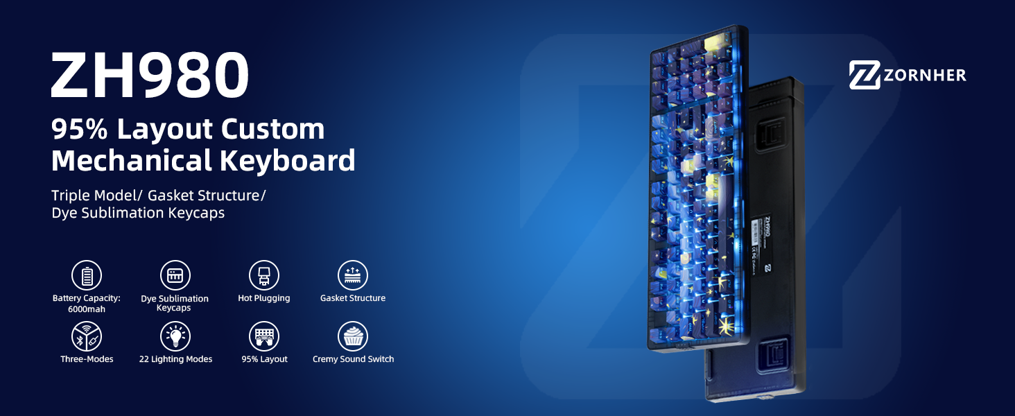 Zornher ZH980 95% Dye-Sublimation Process(Surface Pattern) Keyboard