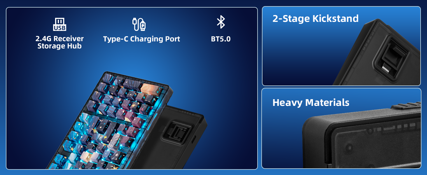 - 【Ergonomic & Durable Build with Style】With a dual-angle kickstand, OEM-profile keycaps, and stable large-key tuning, the ZH870 provides lasting comfort and control. Its 2.54lb weight ensures stability on your desk, while the rugged IMD finish delivers a refined, premium feel.